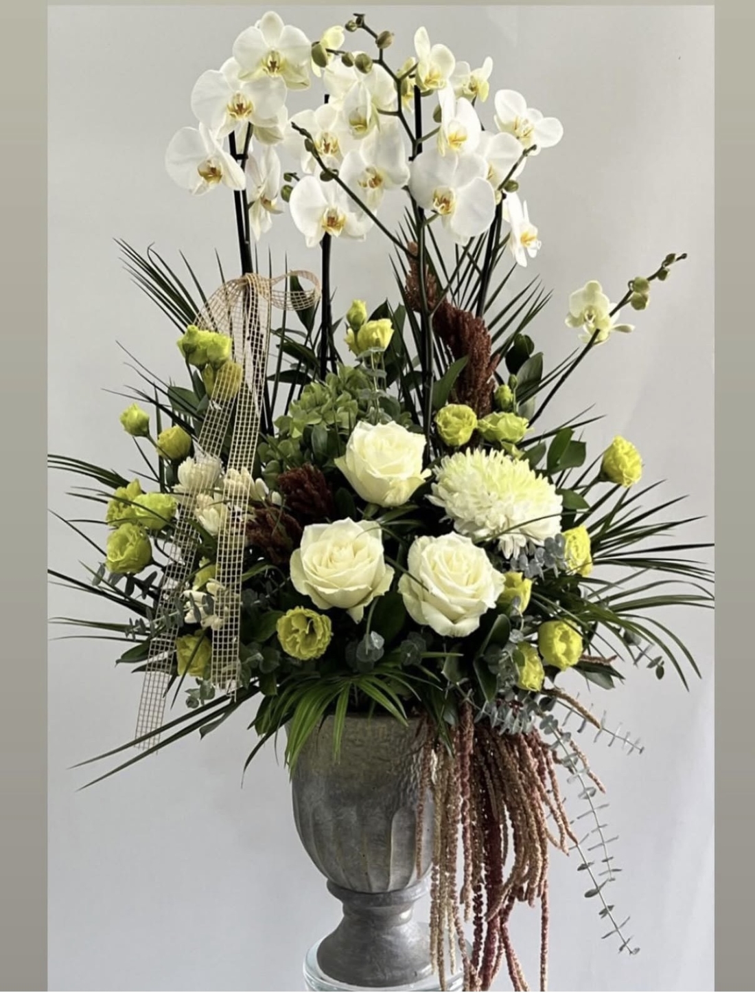 Seramik vazo'da 4 dallı beyaz orkide aranjmanı